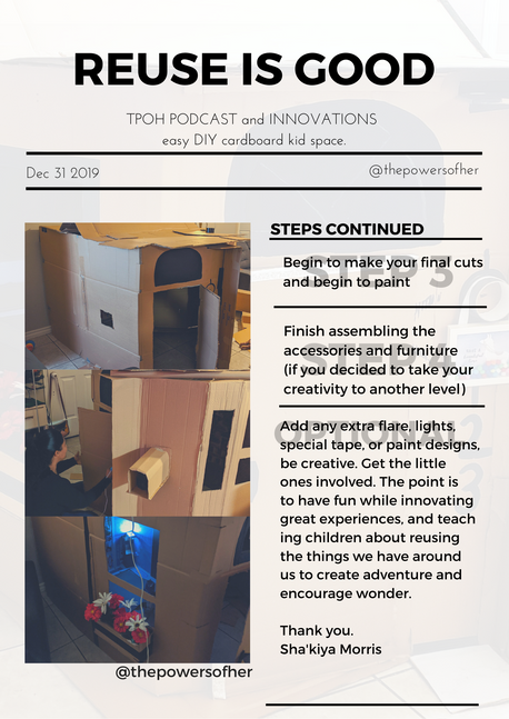 I have just the solution and a creative way to get the kids inspired to play independently and use their imagination. A cardboard playhouse/clubhouse. Using those old boxes, create a new space for them to embrace their inner engineer, designer, or creator. Whatever their desire it can be built using everyday items.
